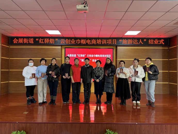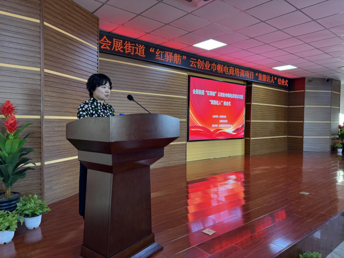 12月24日上午,经开区妇联与区巾帼志愿者协会、会展街道联合打造的“红驿舫”云创业巾帼电商培训“旅游达人”项目结业式在会展街道办事处四楼会议室举行。经开区妇联主席张欣、会展街道妇联主席张惠敏、巾帼志愿者协会创会人闫丽娜及培训学员70余人出席了本次结业式。