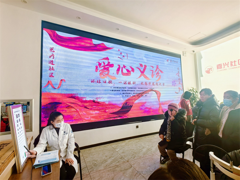 东方广场街道嘉兴社区12月27日讯(通讯员、摄影:洪炜奇)嘉兴社区继续开展“医疗进社区”冬季系列服务,以提升广大居民健康生活为理念,增加居民健康意识和健康生活方式,做到疾病早发现、早预防、早治疗,今天上午9时,社区联合共建单位“一诺眼科”“环球口腔” “长春中医药大学”举办免费义诊活动,服务居民近百余人。