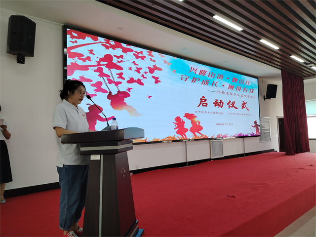 兴隆山镇党委副书记苏凤娟作仪式致辞,苏书记向出席本次启动仪式的各位领导、各位嘉宾表示热烈的欢迎,向长期以来支持兴隆山发展的社会各界朋友表示衷心的感谢。她强调,各位小朋友们要从小树立远大理想,培养高远志向,磨砺坚强意志,热爱学习,善于学习,努力成为德智体美劳全面发展的好儿童,以实际行动诠释“请党放心,强国有我”的铮铮誓言。各位志愿者们要借此次项目的开展,帮助孩子们学有所得、学有所成,树立信心、克服困难,快乐成长、成就梦想。