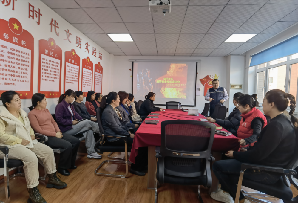 培训现场,吉林省嘉安消防宣传中心的黄德智教官紧扣冬季火灾高发的季节特点,以“理论讲解+案例分析”的沉浸式教学形式,系统解读了消防安全基本知识与消防法规核心要点,让在场人员深刻认识到“消防安全无小事”。培训中,黄教官通过播放近期全国范围内典型火灾事故视频,直观揭露了电器老化、燃气泄漏、易燃物乱堆放等常见隐患的严重危害,并针对居民家庭、沿街商铺等社区高频场景,重点剖析了火灾发生的诱因、初期扑救的关键时机与技巧,手把手传授“如何避免小火酿成大灾”的实用方法。