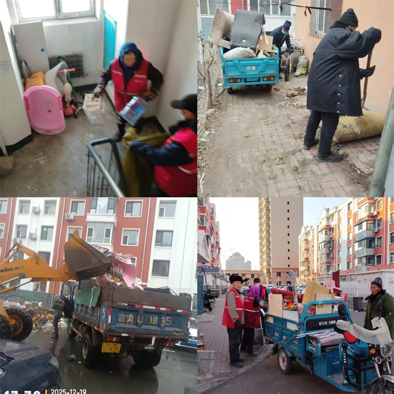 聚宝家园、聚宝富苑两个回迁小区共有48栋居民楼,3629户205个单元门。由于居住人群为回迁农民,不少居民习惯将废弃的家具、旧纸箱、闲置的自行车等杂物堆积在楼道内,清理工作存在困难。自12月13日起,大连社区迅速部署、精准施策,组织全体人员分组包片逐楼逐层逐户开展排查,在排查中,对所有堆放物张贴通知并留存照片,并对堆放物的位置等情况进行登记汇总,且将登记信息及时推送给物业,督促物业落实清理整改,形成“发现-反馈-整改”的闭环管理机制。在清理过程中,社区协调执法大队、城管科、物业工作人员、保洁员、保安员等多方力量分工协作,截至目前,两个小区楼道内已清理完一轮,共出动铲车3次,清理杂物金刚车6大车.目前清理工作仍在进行中。