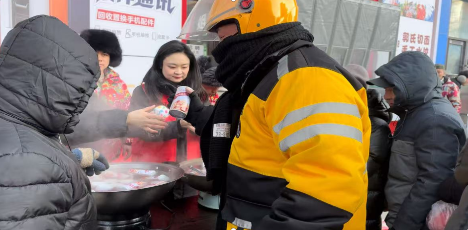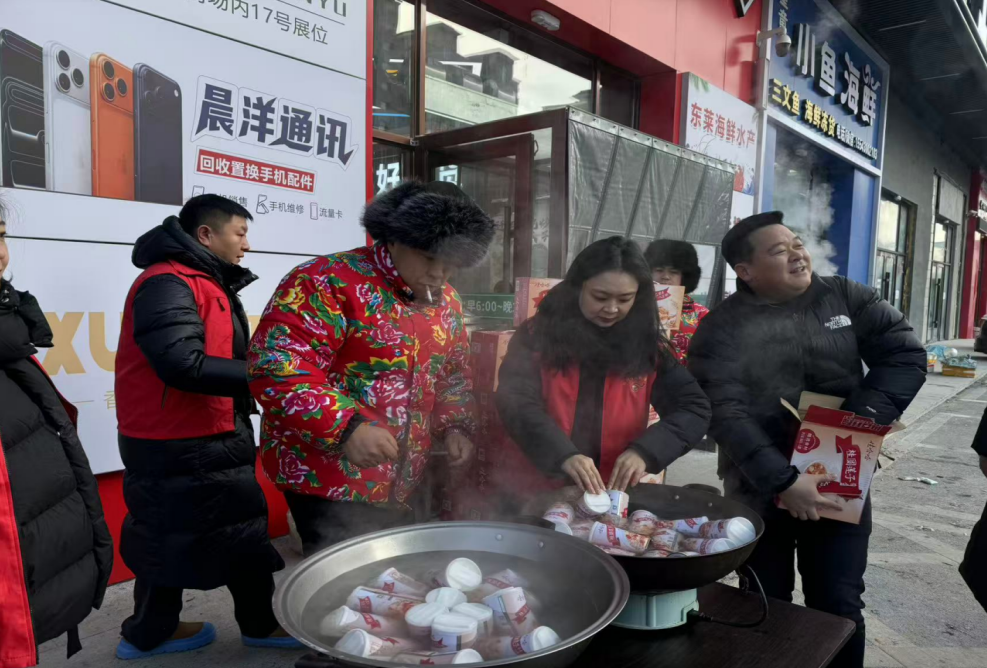 威海社区1月26日讯(通讯、摄影:谷佳璇,腊八至,年味浓。1月26日上午,在威海社区与东来汇超市的联合组织下,一场以“浓情腊八,温暖‘粥’到”为主题的爱心送粥活动,在金川街与珠海路交汇东侧的东来汇超市门前温暖举行。从上午9:30开始,一碗碗热气腾腾的腊八粥被陆续送到环卫工人、快递员、外卖配送员、货车司机等户外劳动者手中,为他们驱散了冬日的寒意,也送上了真挚的节日祝福。