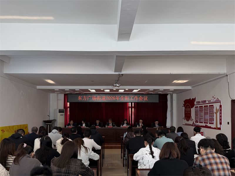 1月30日上午,东方广场街道召开2026年工作会议。首先,深入学习贯彻全区2026年三次创业工作推进会议暨党建工作会议精神,全面落实卫国书记重要讲话要求及管委会各项工作部署。同时,系统总结2025年工作成效,科学部署2026年重点任务,动员全街上下锚定“四个东方”建设目标,以“开局即冲刺、起步即决战”的奋进姿态,为经开区三次创业起步和“十五五”规划开局筑牢基层根基。会议由街道党工委副书记、办事处主任徐国枫主持,街道党工委书记钱进作全街工作报告。