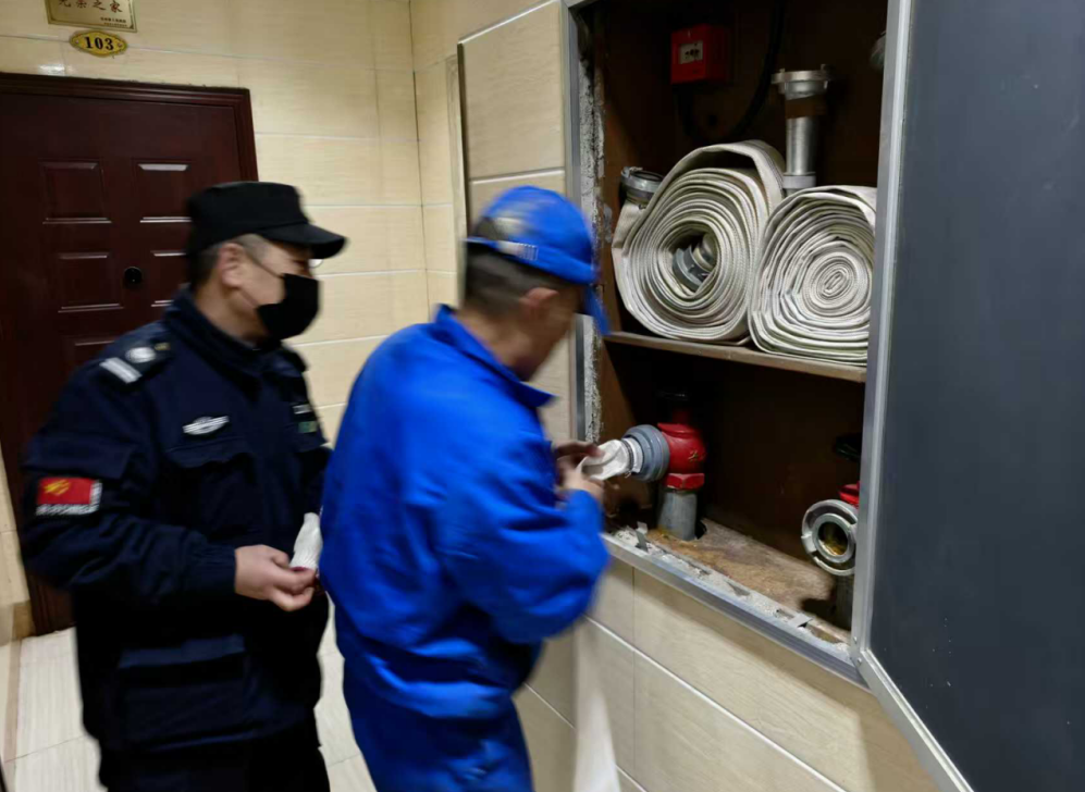 本次活动分为理论讲解与实操演练两个环节。首先,结合典型案例,向参训人员详细讲解了火灾预防常识、初期火灾扑救方法以及火场逃生自救技巧。随后,全体人员移步室外进行实战操作。在消防培训教官的指导下,大家轮番上手学习使用灭火器,按照“提、拔、握、压”步骤进行灭火实操;现场还开展了消防水带连接训练,参训人员两人一组配合操作,学习快速连接水带并开闸检验水压情况。物业工作人员同步对高层水系统进行排查,确保消防设施正常运行。
