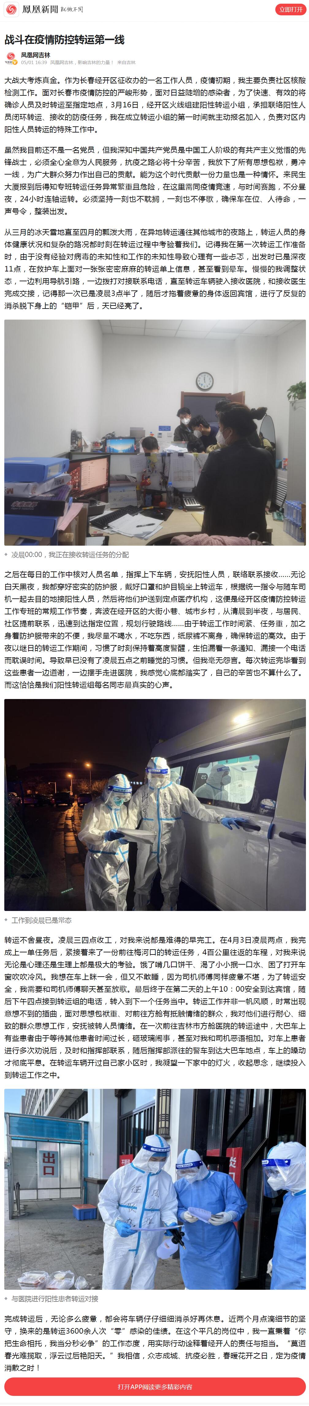 5月1日《凤凰新闻》:战斗在疫情防控转运第一线