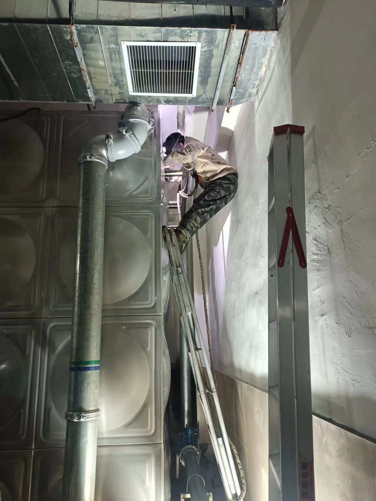 方案实施过程中,工作人员一方面从源头入手,封堵自来水渗漏隐患,彻底切断积水源头;另一方面对堵塞的污水管线进行全面疏通,破解排水不畅难题。此次治理不仅根治了院区污水倒灌的顽疾,更从根本上规避了地下管线交织可能引发的水质污染风险,建立起供排水管护的长效机制,为院区后续安全运营提供了坚实保障。