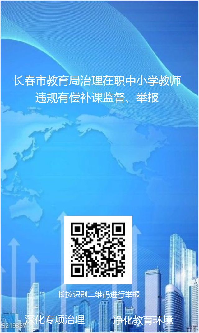 为进一步加强全区中小学师德师风建设,强化对在职教师违规有偿补课的监督与管理,净化教育生态环境,减轻学生课业负担,回应家长和社会关切,畅通举报渠道、扩大举报范围,文教局已要求各学校在校园和班级醒目位置进行张贴,现将市教育局“二维码”举报平台对外公布,欢迎各界人士对在职教师违规有偿补课进行积极举报。