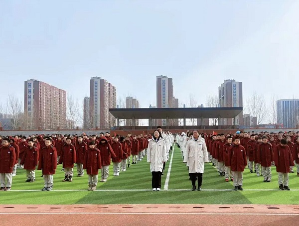 升旗仪式上,杨娜校长发表新学期致辞。她首先向全体师生致以新春的美好祝福,回顾了学校过往一年在教育教学中的丰硕成果,更寄语同学们:“‘力’是脚踏实地的行动力,‘行’是勇毅前行的进取心。新的学期,愿大家以‘力行’为帆,在知识的海洋中勤耕不辍,在成长的道路上步履铿锵,收获学识与品格的双重成长。”