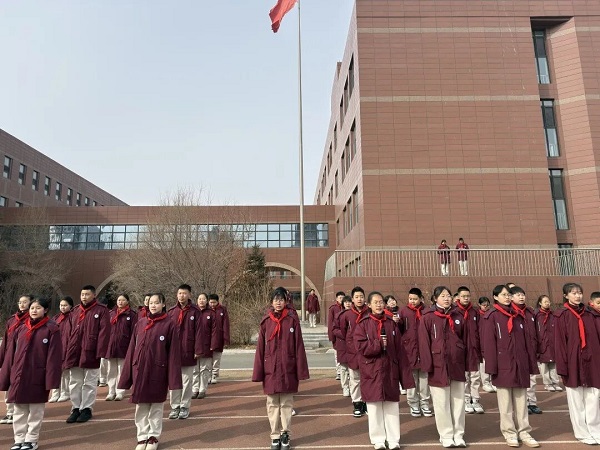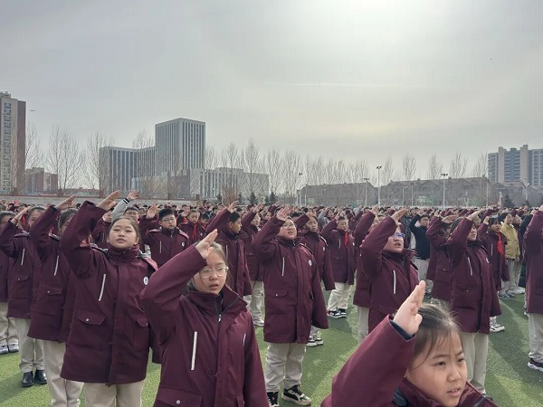 上午9时30分,全校师生有序汇聚操场,共同见证新学期升旗仪式的庄严时刻。伴随着雄壮激昂的《义勇军进行曲》,五星红旗冉冉升起,飘扬于校园上空。全体师生肃立注目,目光追随着国旗,心中涌动着爱国情怀与奋进力量。