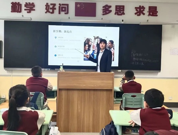 随后,教师代表李阳阳老师发言,她承诺全体教师将以“躬耕教坛、强国有我”的初心,深耕课堂、关爱学生,做学子成长路上的引路人与同行者。