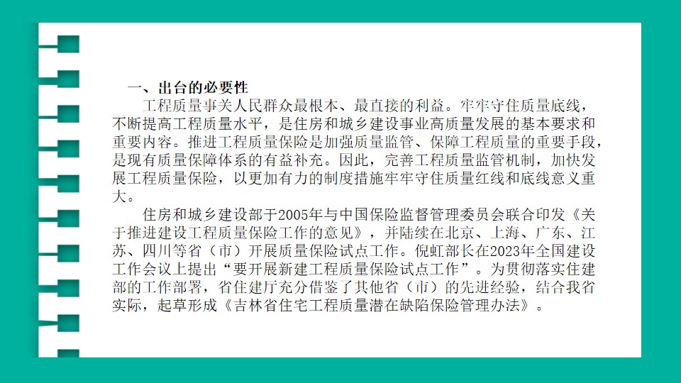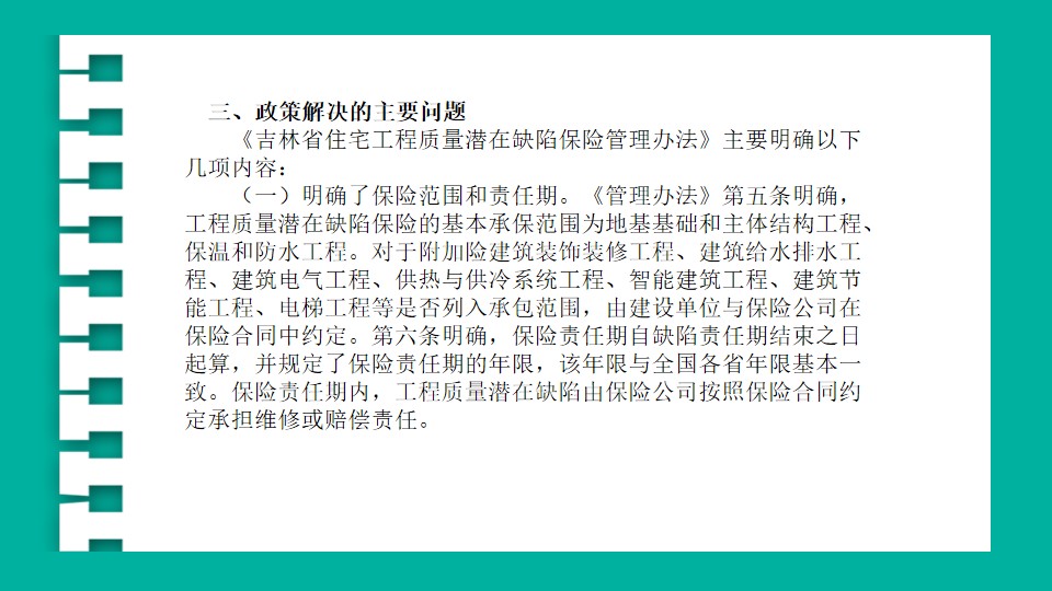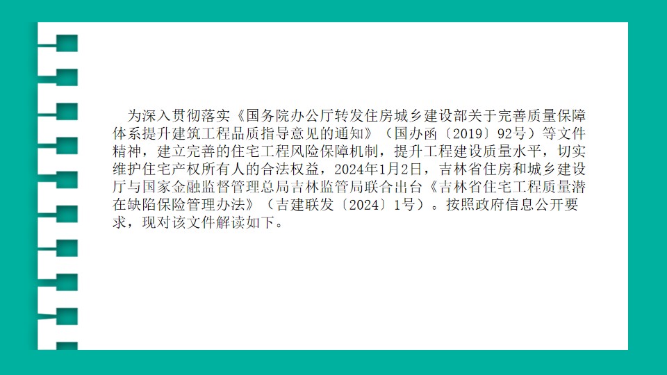 《吉林省住宅工程质量潜在缺陷保险管理办法》政策解读