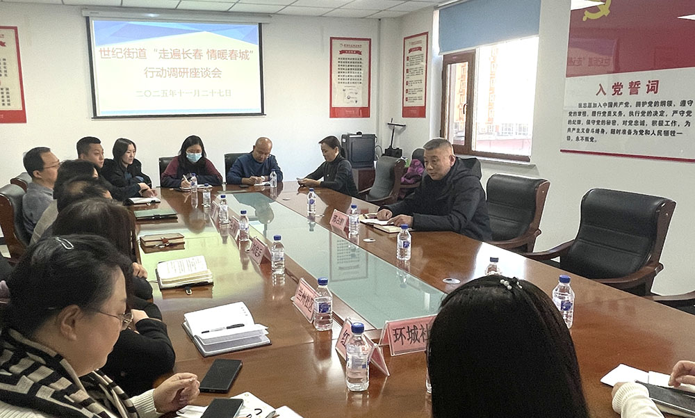 为深入贯彻落实市、区关于“走遍长春·情暖春城”相关工作部署,坚持人民至上,做好重点人群关爱帮扶工作,11月27日下午,管委会副主任邢占鹏组织召开世纪街道“走遍长春·情暖春城”行动调研座谈会,世纪街道办事处领导班子、相关社区书记参会。